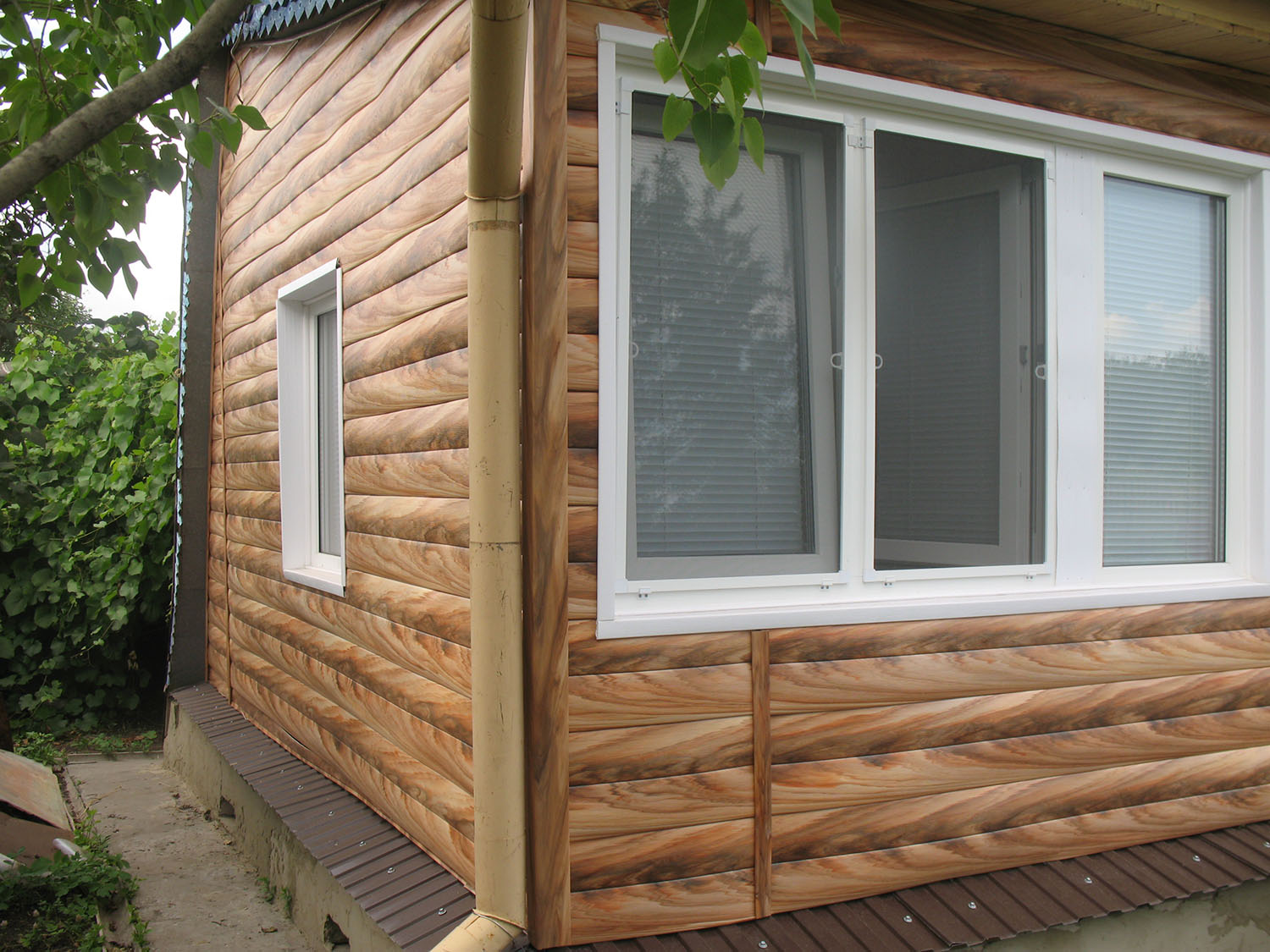 Это важно, так как нужно грамотно рассчитать количество материала и учесть особенности при дальнейшем монтаже; виниловый сайдинг под бревно – очень красивое решение для отделки деревянного дома. Имитация натурального оцилиндрованного бревна придает коттеджу неповторимый колорит и натуральность рубленого сруба. Чаще всего блокхаус поставляется с имитацией фактуры натурального дерева или в цвете, что дает возможность оформить фасад дома в нужном стилевом и цветовом решении