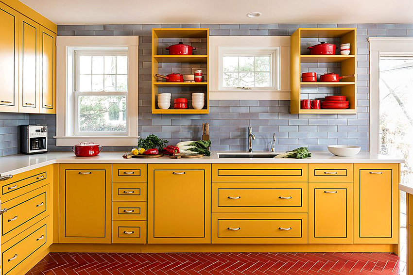 Этот цвет повышает аппетит, оживляет интерьер, делает его более жизнерадостным.