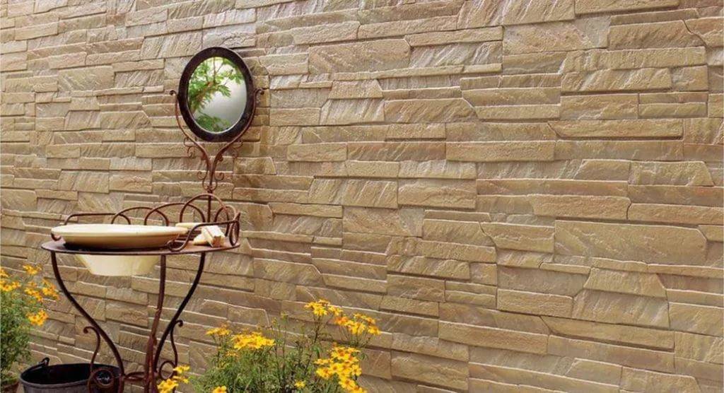 Производится, искусственный камень для наружной отделки дома в основном из цемента и глины с добавлением разных материалов, улучшающих свойства плит. Из гипса делают внутренний декор. Для отделки фасада используют искусственный камень: