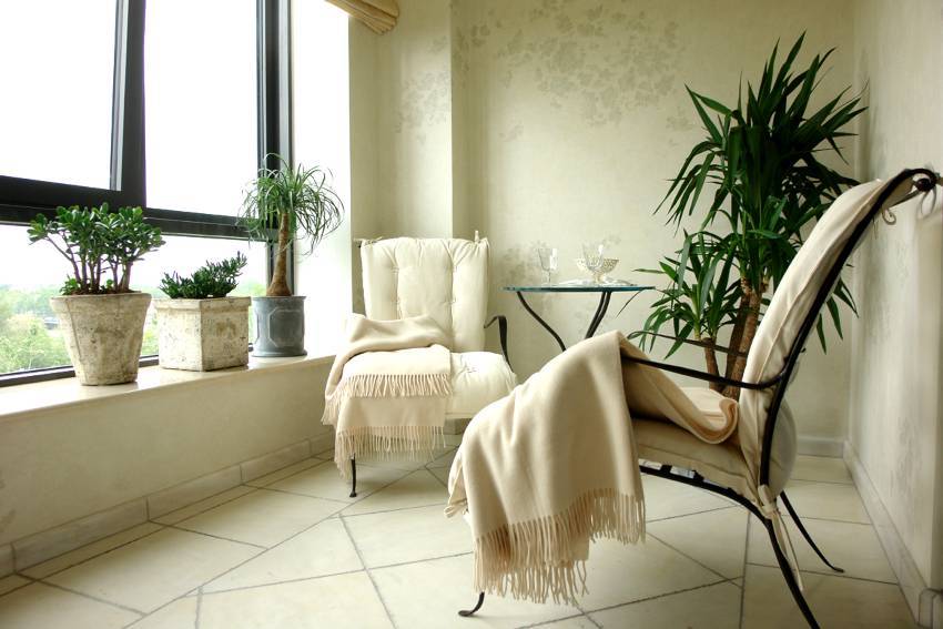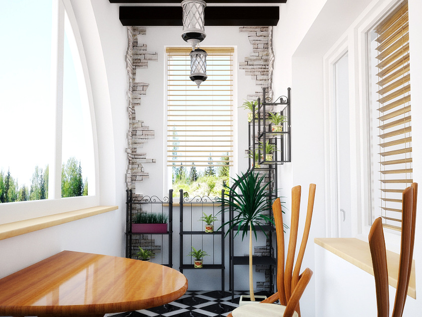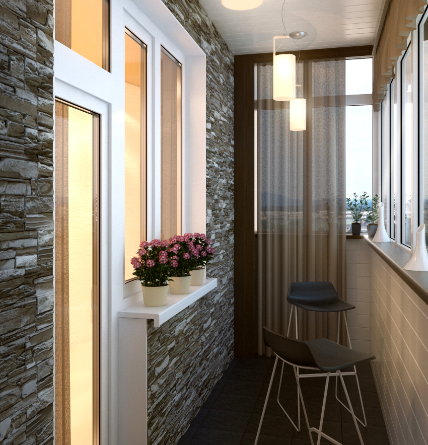 Для отделки балкона применяются: плитка, штукатурка, обои и другие материалы