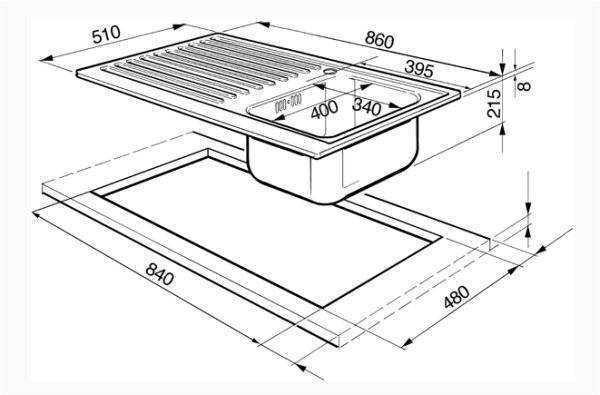 В том случае, если столешница без шаблона, на нее следует установить, перевернув, мойку и обвести по контурам смываемым маркером. Если в одном блоке и мойка и сушильный отсек или поддон для отходов, то вырезается одно общее отверстие.