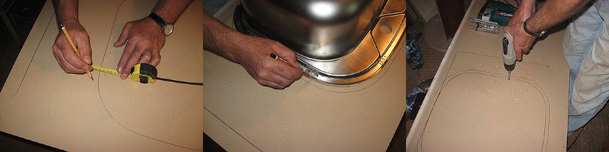 Иначе, если ей не понравится расположение мойки, придётся покупать новую столешницу. Когда учтены все пожелания женской половины,обводим карандашом или тонким маркером, в зависимости от цвета столешницы, габариты мойки.