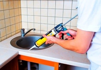 Нанесение герметика на мойку