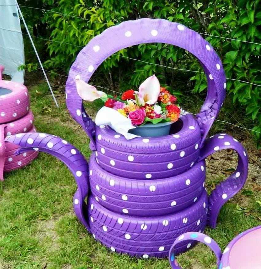 Всего за несколько часов, из покрышек, народные умельцы смогут смастерить оригинальную клумбу или вазу для цветов, которые непременно станут украшением вашего сада.