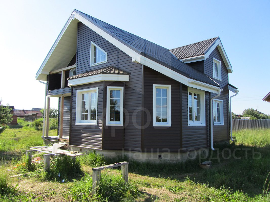 Обычно выбор фасадной отделки совершается уже после того, как кровля готова. Производители сайдинга предлагают многообразие цветовых решений, среди которых всегда можно найти подходящие оттенки для конкретного варианта.