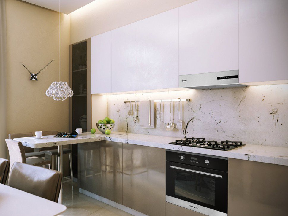 - Необычную подсветку, которая не только осветит рабочую зону кухню, но и придаст ей оригинальный дизайн. Для подсветки используют галогеновые, люминесцентные или светодиодные лампы.