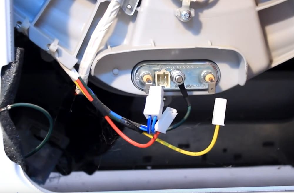 Зажмите крепежную гайку, подсоедините провода, их важно не перепутать. Последний этап – обратная сборка машинки. Посадочное место нагревательного элемента