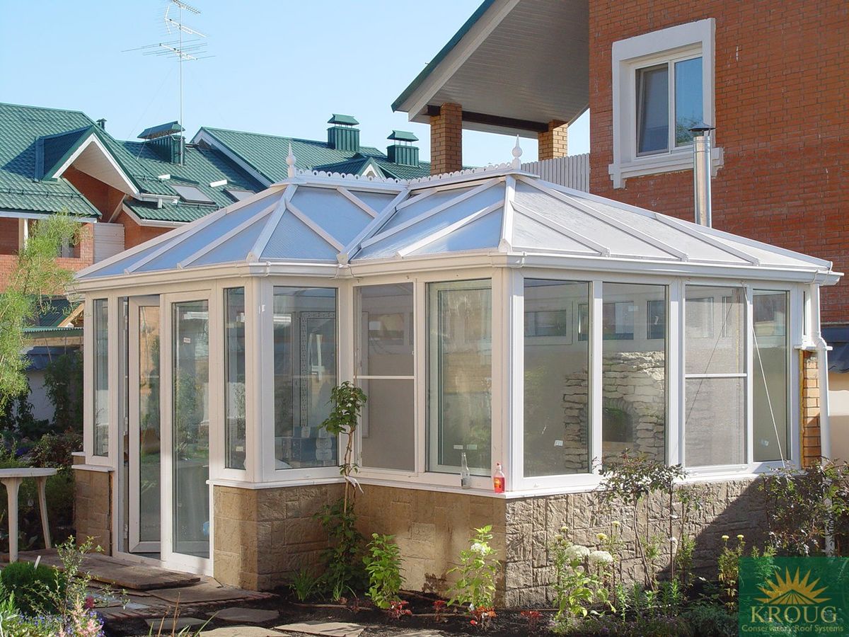 В качестве основного материала применяются специализированные двухкамерные стеклопакеты, которые обладают мощным теплосберегающим эффектом. Такая веранда или терраса уже может служить полноценным зимним садом.
