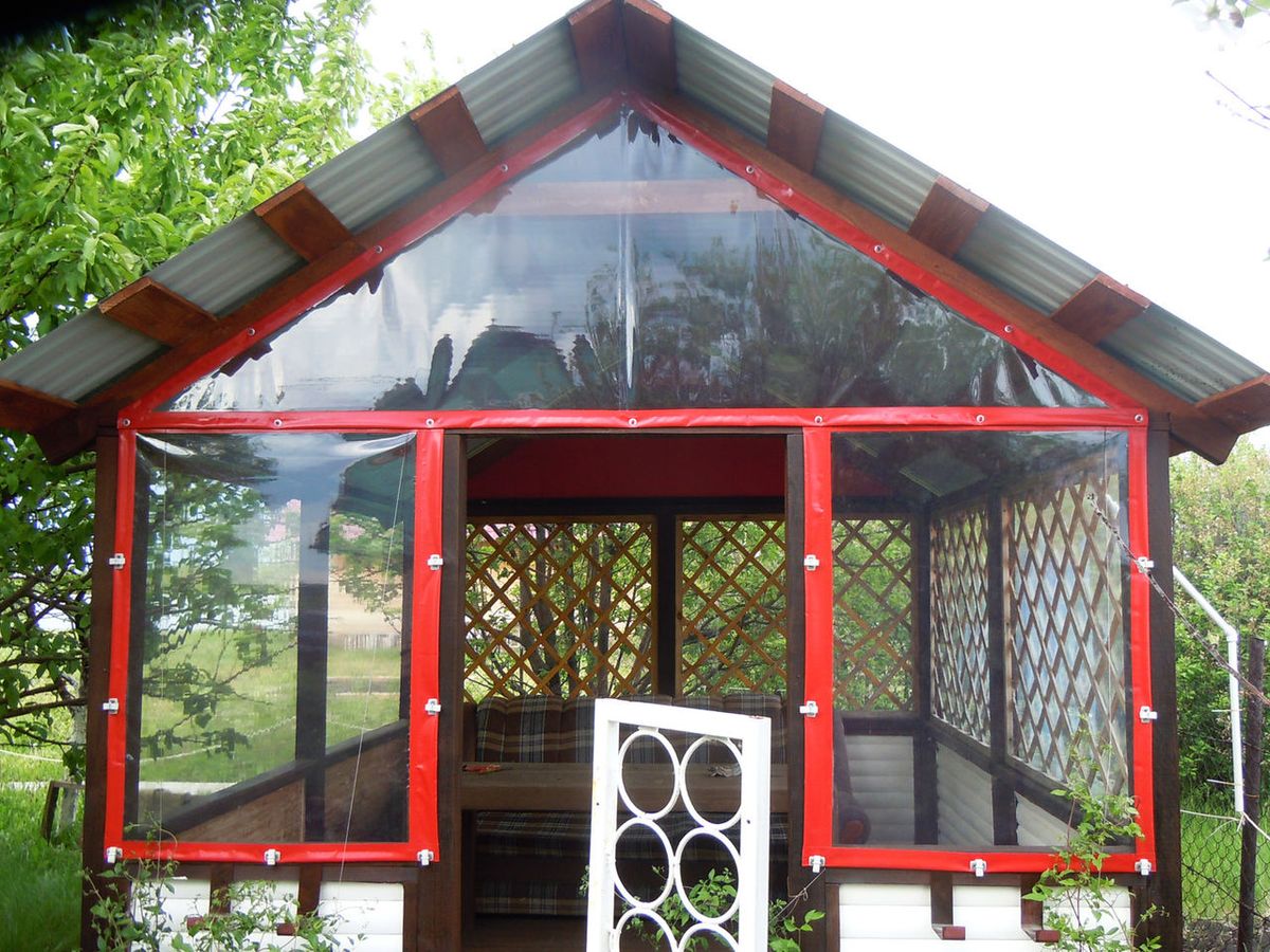 Пластик хорошего качества на надежных направляющих вполне может использоваться для защиты беседки даже зимой, а разнообразие цветовой гаммы дает место фантазии и осуществлению самых интересных дизайнерских решений, в этом случае важно руководствоваться чувством меры и здравого смысла