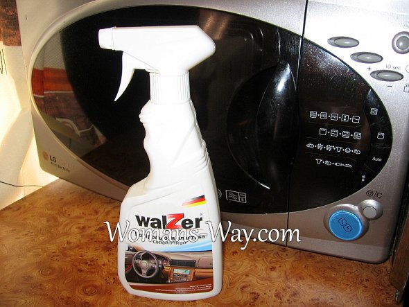 Сначала мы моем микроволновку снаружи обыкновенным моющим средством для посуды Феери .. Конечно с каплями жира придется повозится. Иногда приходится буквально выцарапывать грязь из углублений с помощью зубочистки, а вот придать окончательный парадный и чистый вид вашей СВЧ можно с помощью специального средства для ухода за торпедой автомобиля.
