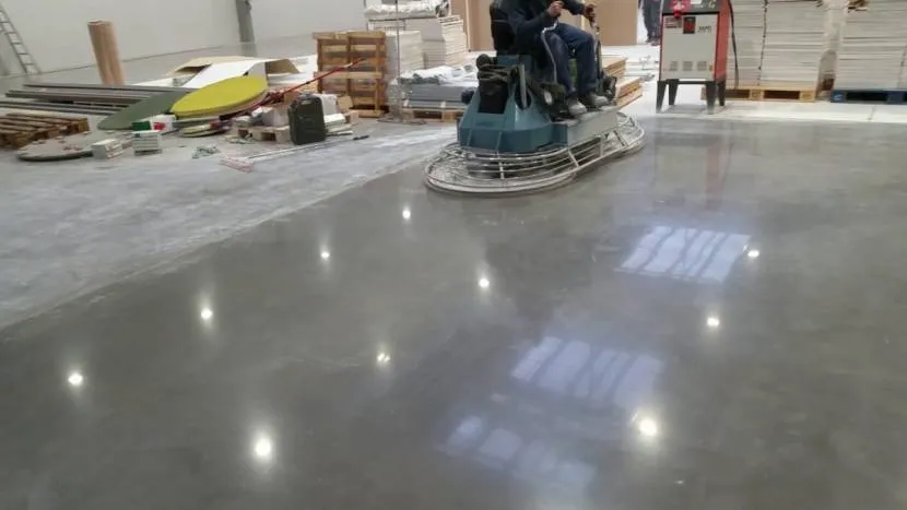 После черновой подготовки выполняют финишную затирку бетона вертолетом; технология подразумевает использование шлифмашины с лопастями. Чистовая шлифовка выполняется минимум в два прохода, причем второй проход выполняется перпендикулярно к первому.