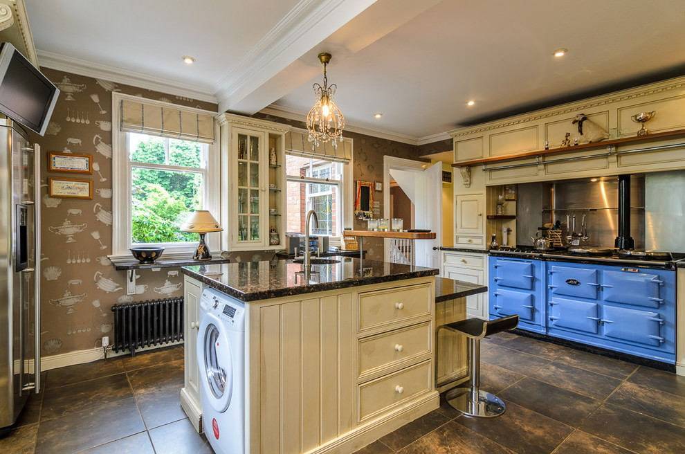 На фото уютная островная кухня в классическом стиле.