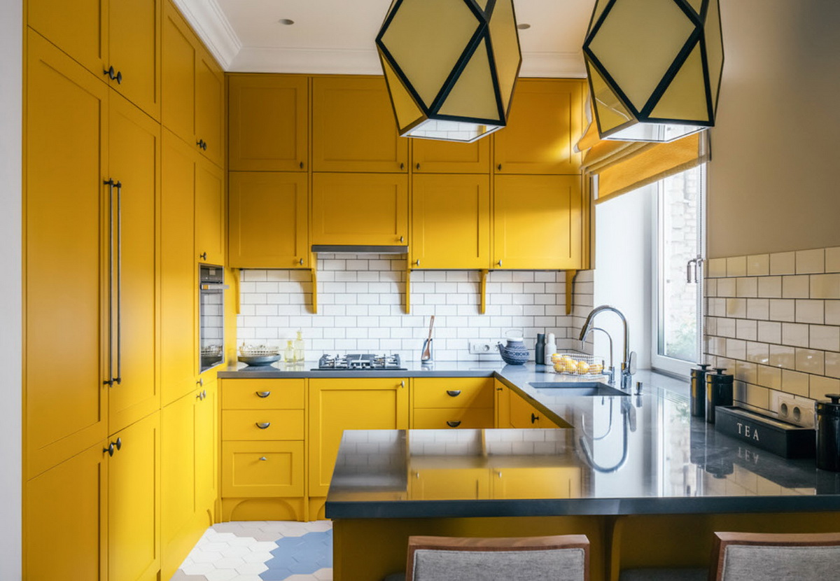 Для лаконичной и стильной жёлтой кухни подойдут различные стилистические направления. Главное – правильно подобрать оттенок и скомбинировать его с другими цветами, материалами, текстурами.