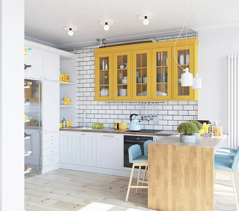 Предпочитая яркий дизайн в кухне, не обязательно, чтобы все помещение было выполнено желтым цветом