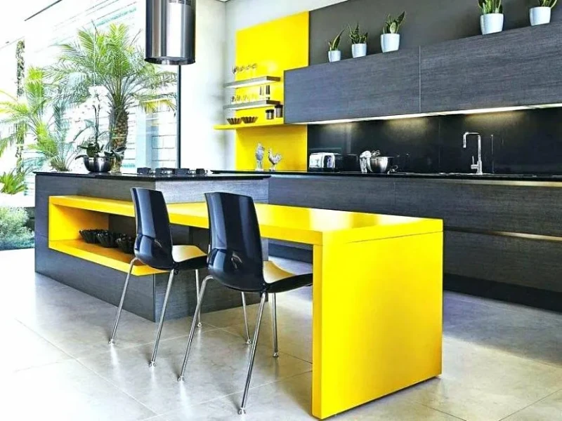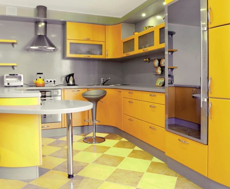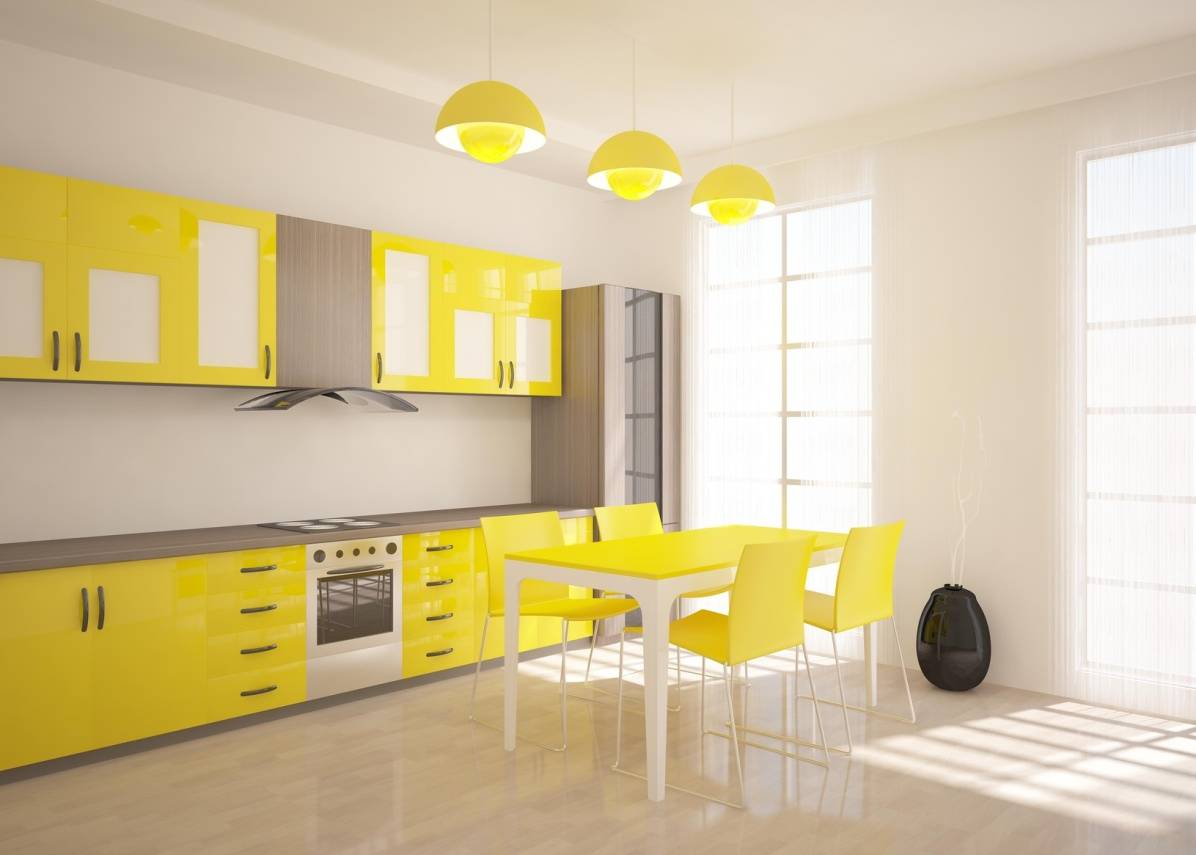 - возможность реализации любой дизайнерской концепции в кухне — жёлтый гармонично вписывается в большинство существующих стилей от классики до модерна и хай-тек.