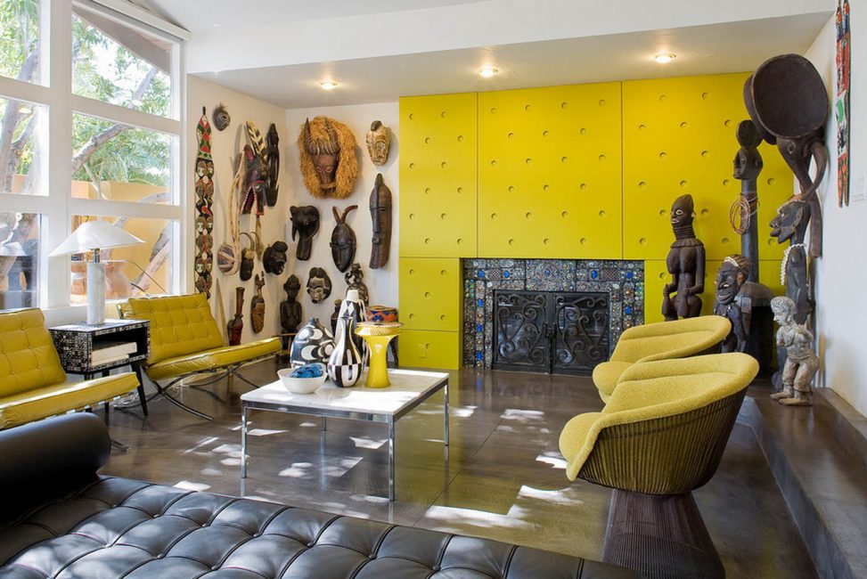 Современный и этно стиль прекрасно уживаются с желтым и черным