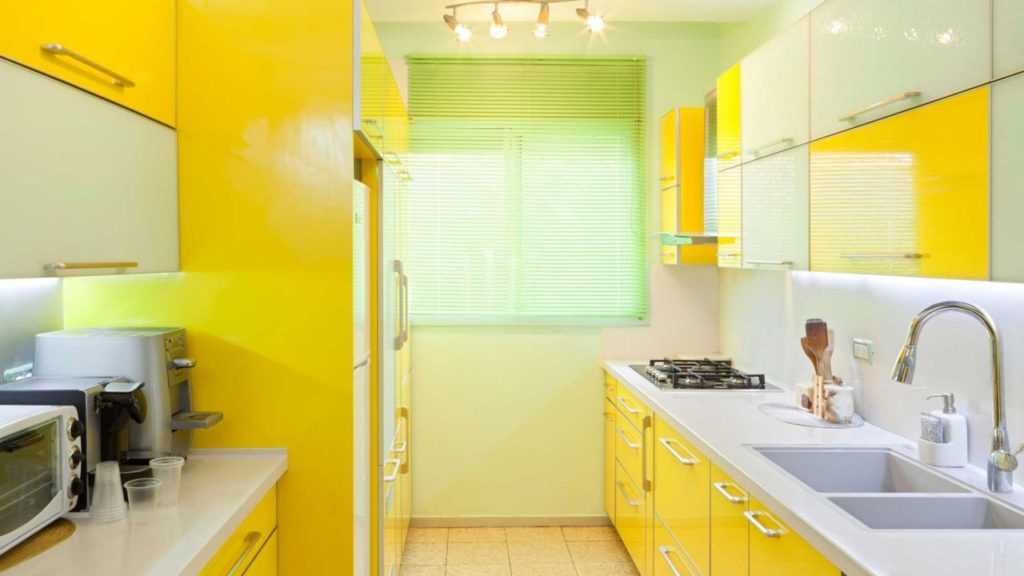 Это может быть сдержанный песочный, насыщенный янтарный или тон шафрана, а самые смелые могут выбирать лимонный и золотой. Когда главный цвет подобран, можно переходить к следующему этапу – решить, где желтый будет играть главную роль. Помещение желтого цвета может быть создано с помощью кухонных фасадов.