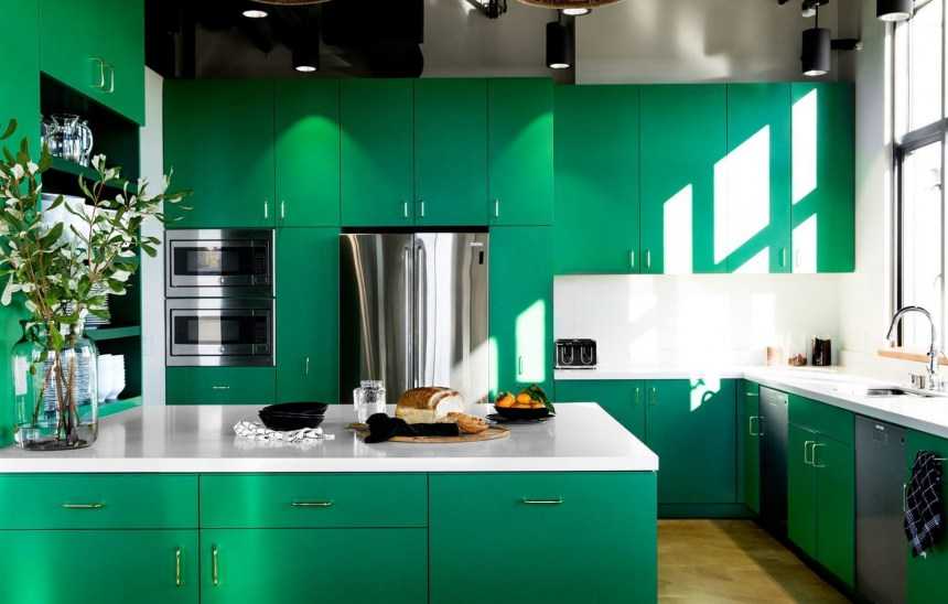 При ошибочном сочетании тонов, кухня в зеленых тонах будет плохо смотреться. Чтобы не беспокоиться о выборе цвета, необходимо придерживаться некоторых правил. К примеру, яркие тона могут придать акцент, но ими нельзя оформлять столешницы. Для них больше подойдет темный цвет.
