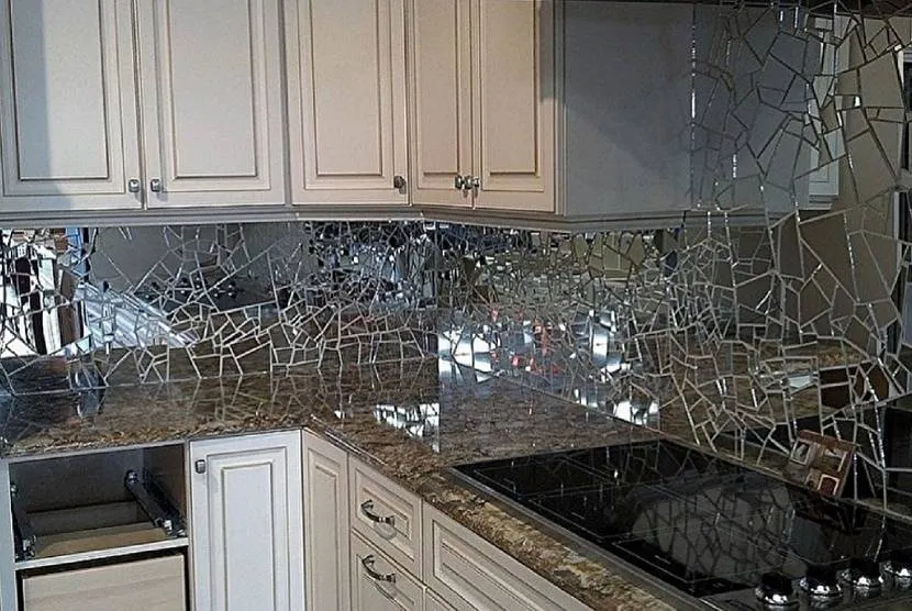 Зеркальный фартук выглядит необычно и роскошно, но он сильно пачкается и нуждается в ежедневном уходе