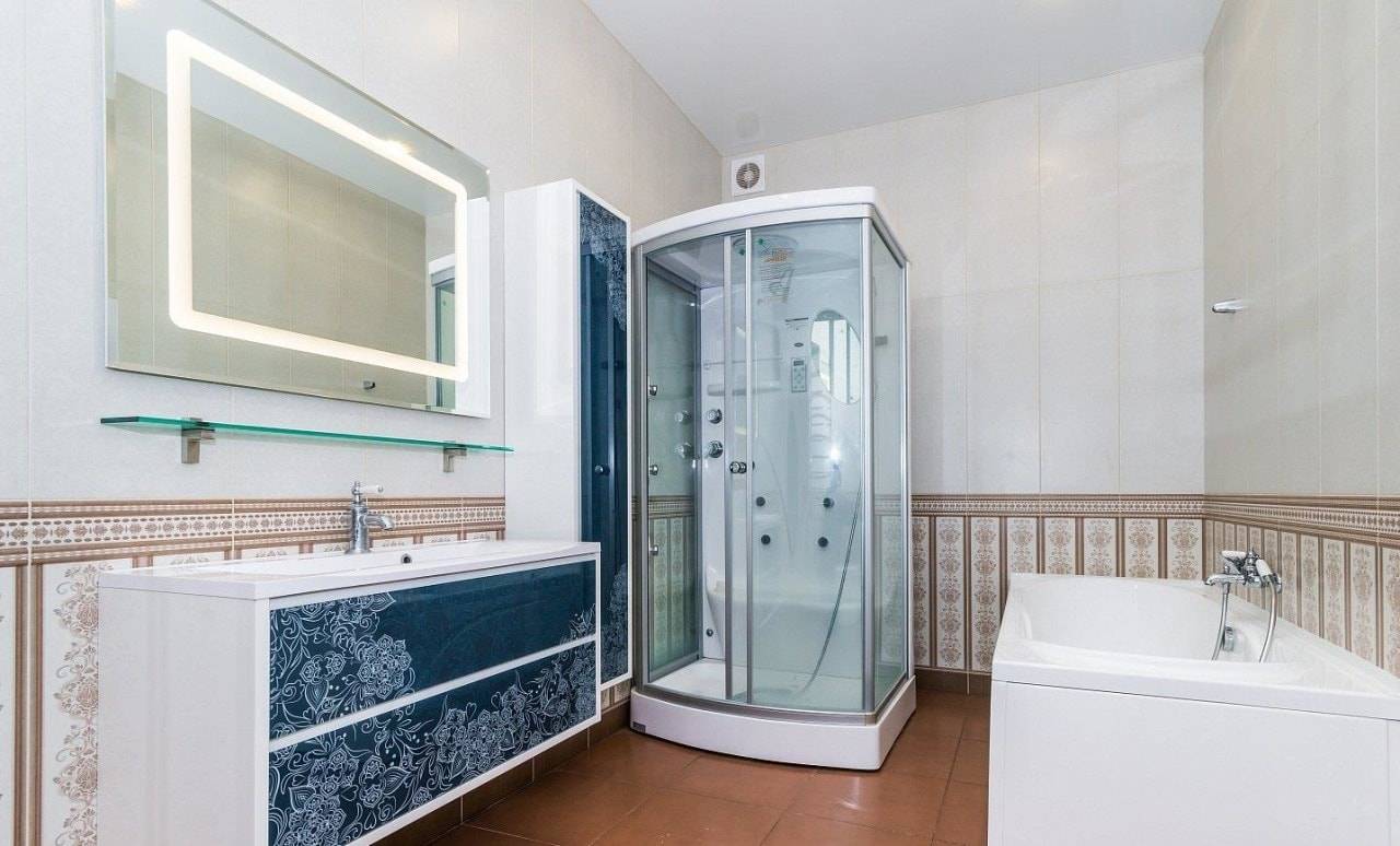 Обычно зеркало размещают над раковиной. В душевой кабинке можно поместить аксессуар сбоку, на створке кабинки. Кроме большого зеркала, в душевой кабинке возможна установка и небольшого косметического аксессуара.