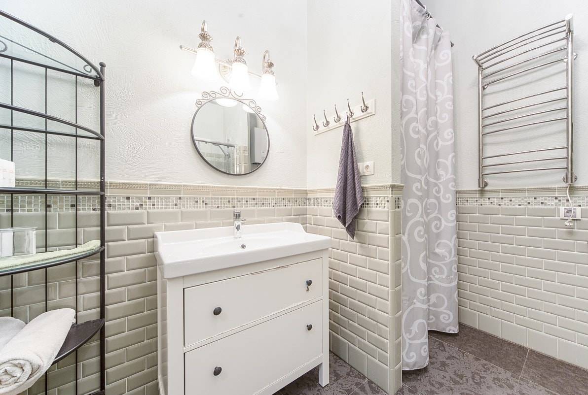 - Форма поможет подкорректировать визуальные пропорции ванной комнаты. Вертикальная модель поднимет потолок, горизонтальная — добавит объема.