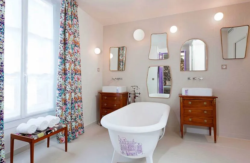 Необычные произвольные или асимметричные формы, станут подходящим украшением для авангардного дизайна. Фигурные зеркала особенно будут уместны в просторных санузлах, которые не перегружены лишним декором.