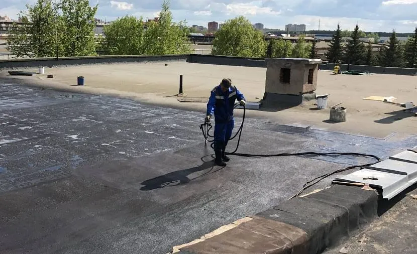 Напыление жидкой резины на кровлю выполняется очень быстро