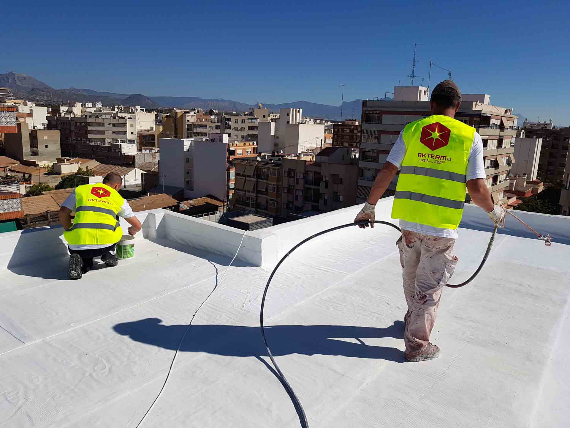 Используя технологию напыления, жидкую гидроизоляцию устраивают на плоских или, наоборот, значительно наклонённых крышах. При орошении состав распределяется на поверхности идеально равномерно.