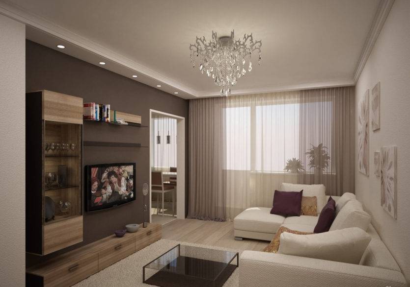 Просмотрев фотографии готовых интерьеров, можно выбрать подходящий вариант. Также стоит учесть площадь комнаты и высоту потолка. Светлые тона стен – хорошее решение для маленького плохо совещенного зала, поскольку они визуально расширяют пространство.