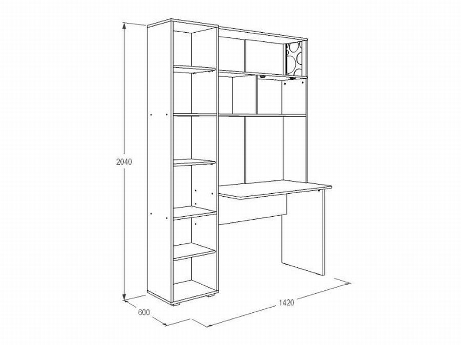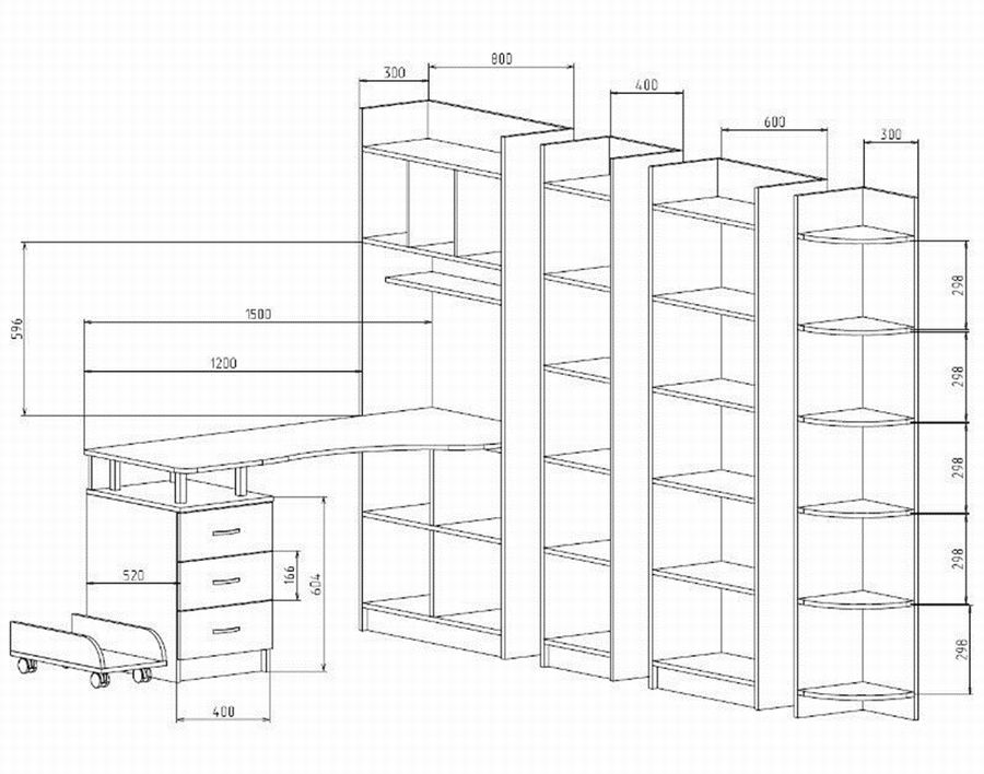 На сегодняшний день стол-стеллаж является самым оптимальным вариантом для небольших помещений, где нужно расположить удобное рабочее место, но при этом не потерять полезную площадь. Такая мебель помогает с умом использовать небольшое пространство. А чертежи, представленные ниже помогут разобраться в конструкции подобных столов и определиться с моделью, которую вы можете изготовить самостоятельно.