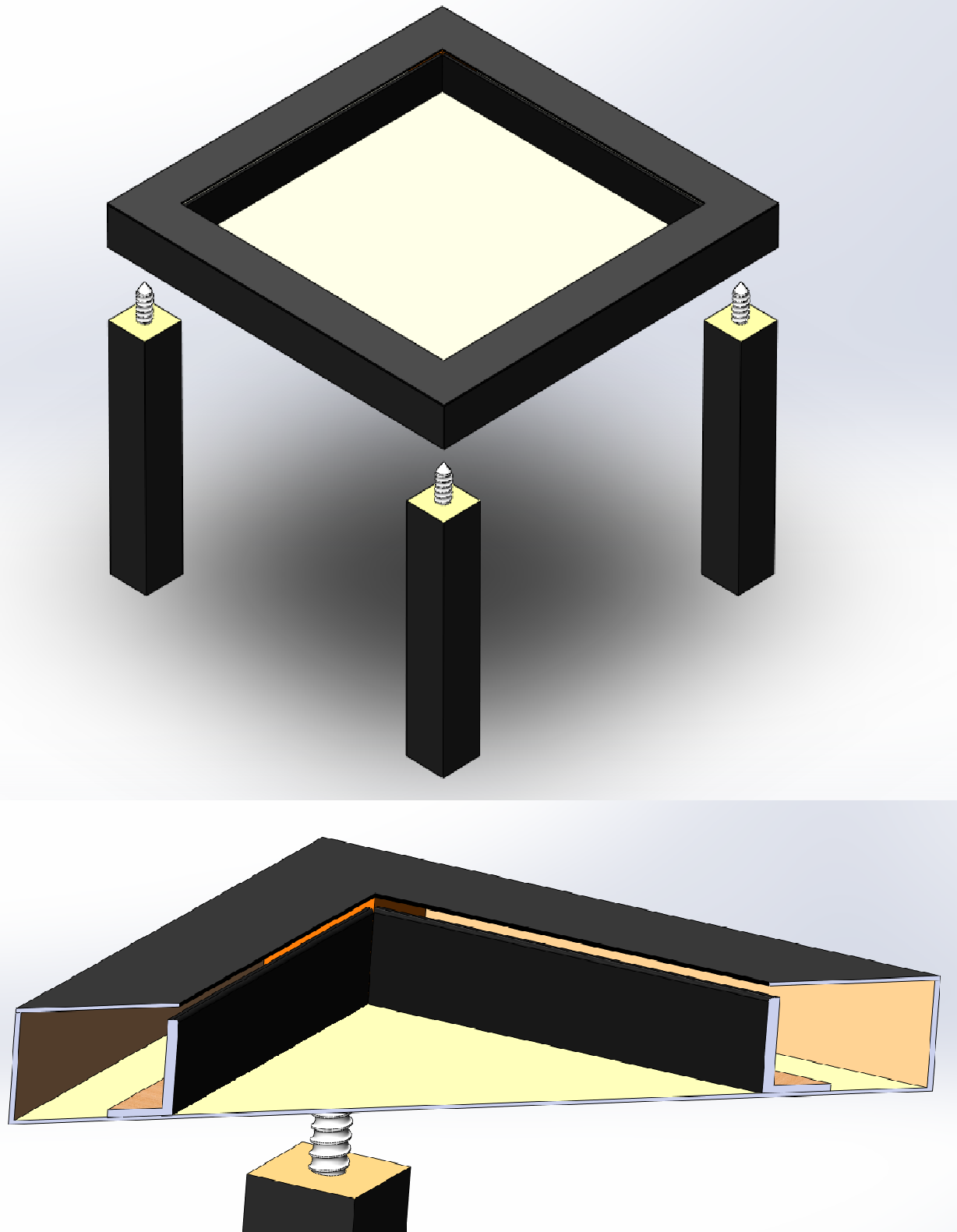 - Соберите конструкцию столика, соединяя полки и стойки с помощью клея и крепежных элементов. Примените клей к соединяемым поверхностям и затяните гвозди или шурупы для надежной фиксации.